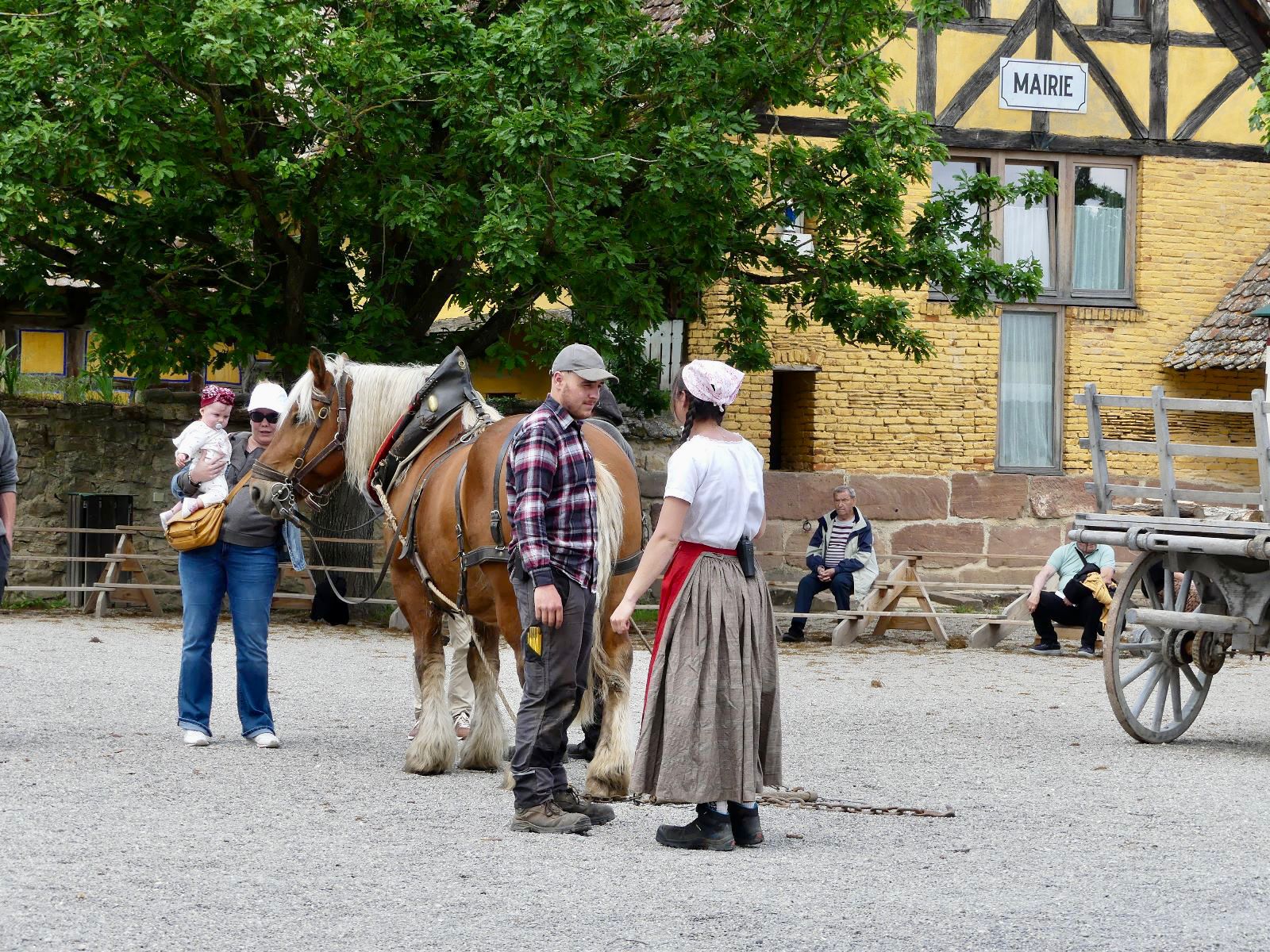 Je me laisse mener par le bout du nez jusqu’à la maison des goûts et des couleurs, le pâtissier sort les gâteaux du four, ils sont concoctés à partir des produits récoltés dans les champs de l’Écomusée, labourés à l’ancienne par des chevaux de trait. C’est délicieux !