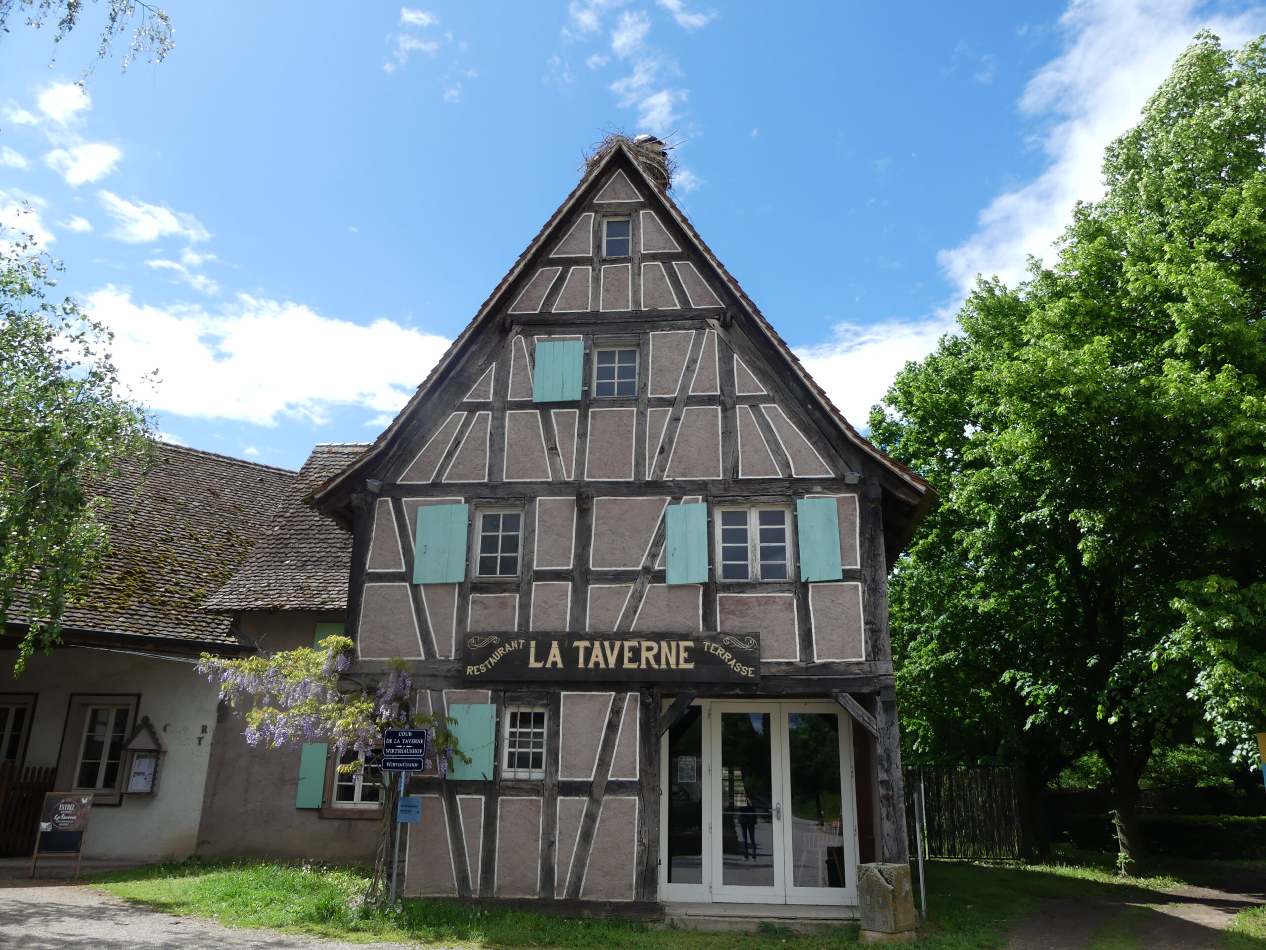 Déborah, la chargée de communication, m’a expliqué que tout a commencé dans les années 70 avec un groupe d’étudiants qui décide de préserver et de sauvegarder les bâtiments représentatifs de la région. Vous ne vous levez jamais le matin en vous disant : « Tiens, si je démontais les belles maisons à colombages d’Alsace vouées à la destruction pour les reconstruire ailleurs », eux si ! Une demeure par-ci, une autre par-là, mais c’est que ça prend de la place tout ça. Face au désarroi de cette charmante équipe d’allumés passionnés, la municipalité d’Ungersheim leur offre un terrain. Il est détruit par des années d’exploitation des mines de potasse, mais rien ne freine les étudiants qui reconstruisent une à une les maisons jusqu’à l’ouverture du musée, en 1984. Aujourd’hui, la friche industrielle a laissé place à un véritable village et au retour de la biodiversité avec 4 800 espèces répertoriées ! Chaque maison porte le nom de l’endroit d’où elle vient : Monswiller, Westhouse, Illkirch, Ribeauvillé ou Ittenheim, certaines ont plusieurs centaines d’années et toujours une vraie histoire. Elles ont été habitées, aimées, oubliées, puis sauvées.