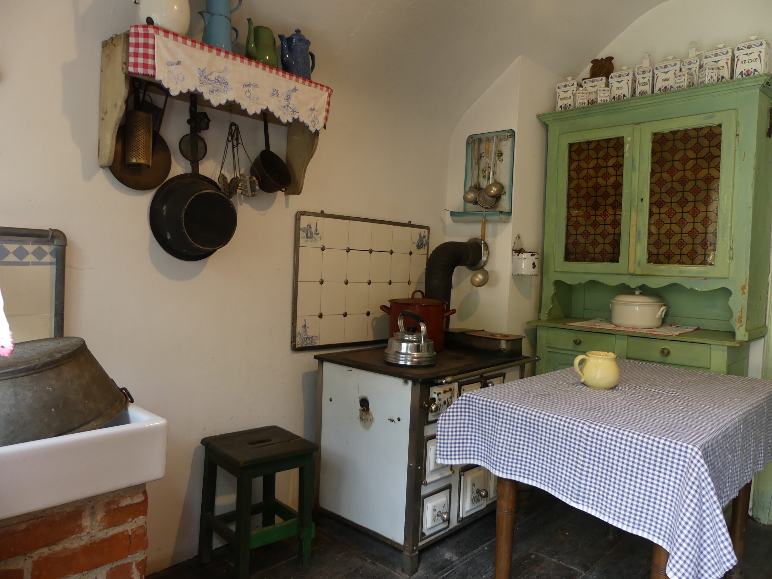 Il y a deux façons de découvrir l’Écomusée : pour les psychorigides du contrôle, il est possible de suivre l’ordre du plan – prévoyez trois semaines – pour les autres, il suffit de se laisser porter au gré de sa curiosité. C’est ce que je fais, et mes pas me mènent jusqu’au numéro 56, une petite maison en brique aux volets verts.