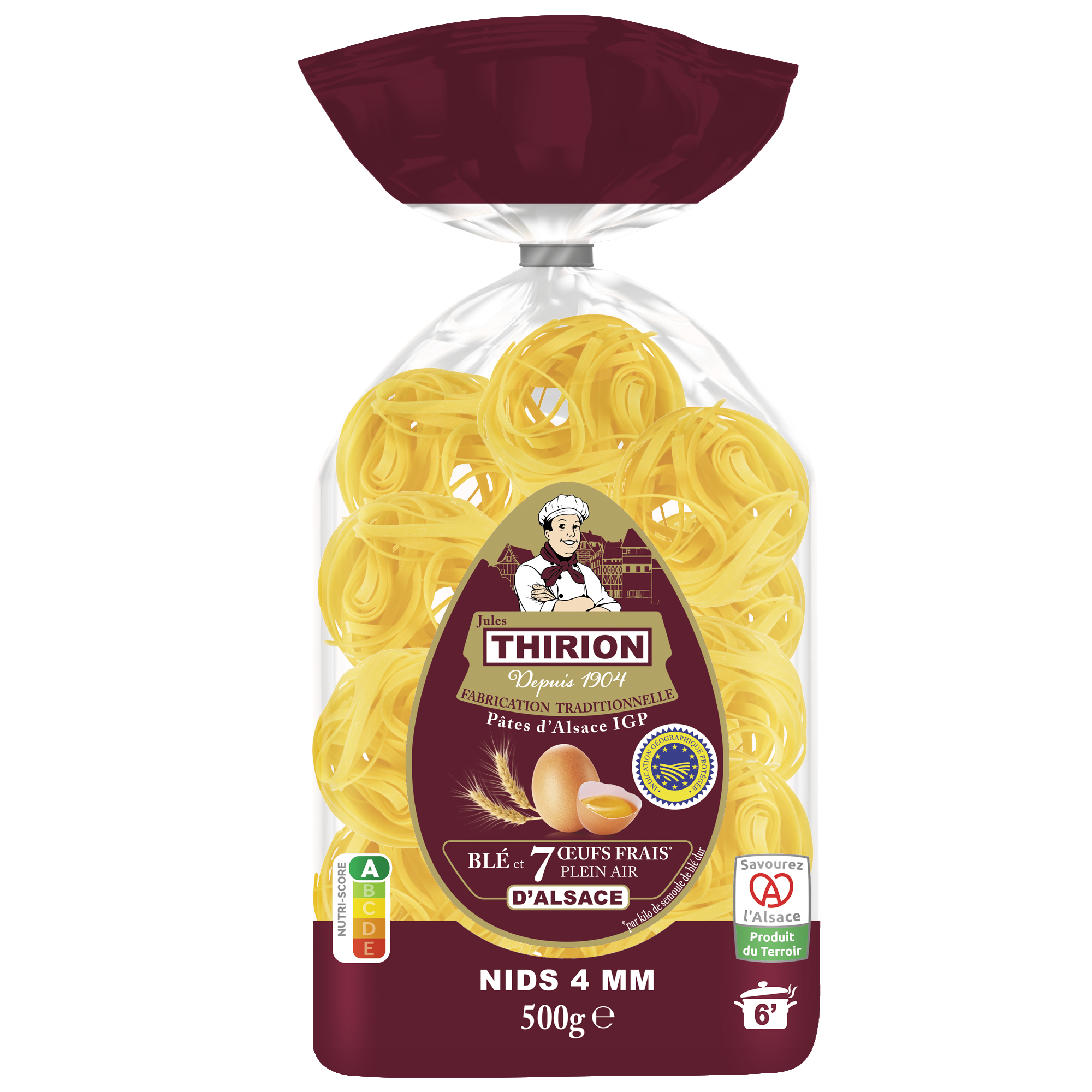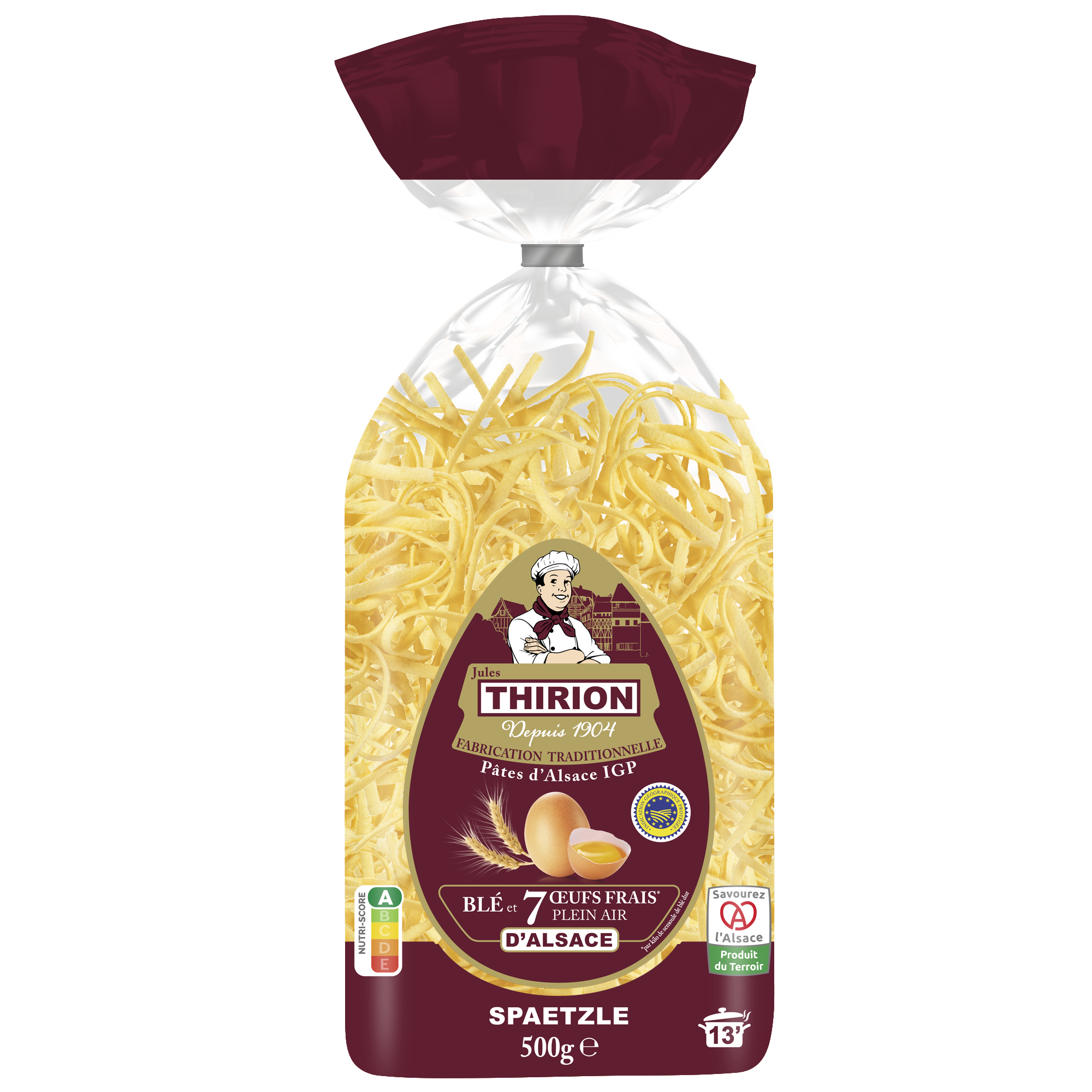 Nicolas Guize : Quand on a repris les pâtes Grand’mère en 2022, je me suis présenté à l’écosystème alsacien et en particulier à Thirion, qui rencontrait déjà certaines difficultés d’approvisionnement ou de mise aux normes, avant même l’inflation… Pour assurer la continuité de cette marque chère au cœur des Alsaciens, l’enjeu a été de retravailler les produits Thirion avec les spécificités et le savoir-faire transmis par l’ancienne équipe et qu’on a nous-mêmes sublimé. D’abord, en respectant le cahier des charges exigeant de l’IGP que la marque n’avait pas, c’est-à-dire sept œufs frais au kilo, et ensuite, en travaillant avec des produits 100% alsaciens. C’est unique et nouveau, et cela va nous donner un deuxième sigle, Savourez l’Alsace.