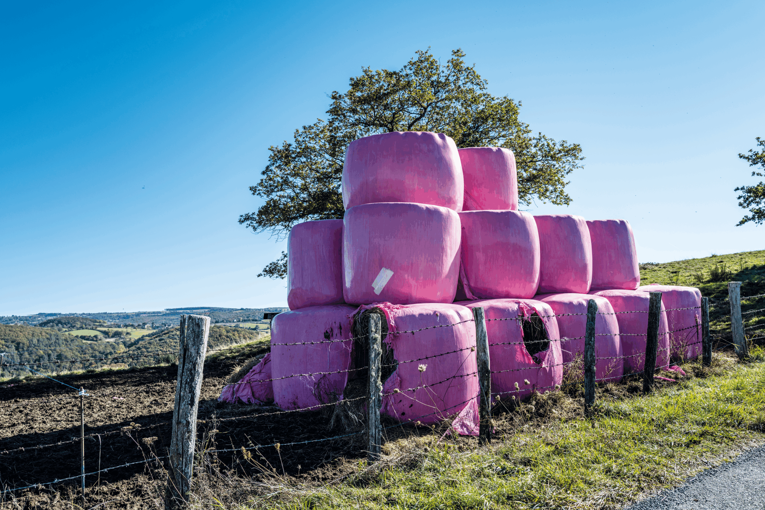 Elles parsèment les champs et n’étonnent personne tant elles font partie du paysage. En revanche, ce qui peut surprendre, c’est la couleur du plastique dans lequel les bottes de paille sont emprisonnées, pour éviter la moisissure du foin. Généralement, ces ballots sont verts. Mais il arrive que le plastique soit rose. Alors non, ce n’est pas pour apporter un peu de couleurs dans les champs, mais pour sensibiliser au cancer du sein. Pour chaque rouleau rose acheté, 1 euro est reversé à la fondation Arc, spécialisée dans la recherche contre le cancer du sein. Et si vous voyez d’autres couleurs, sachez que le bleu est dédié au financement de la recherche contre le cancer de la prostate et le jaune, contre les cancers des enfants.