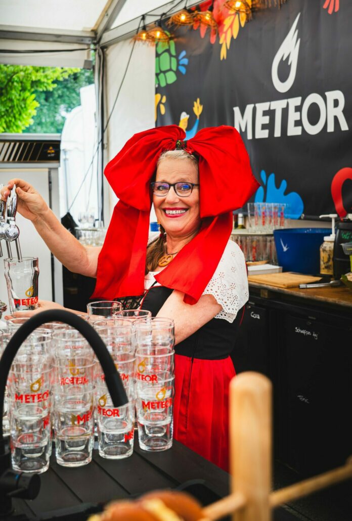 Et c’est vrai que j’aime tellement ce contact, concentré d’énergie, d’impro et d’humour, que je serais capable de créer un spectacle rien que pour avoir une raison d’aborder les gens dans l’espace public. C’est vrai aussi que déambuler en costume et coiffe pour célébrer la culture et la joie de vivre… est complètement dans l’esprit de l’Oktoberfest. Il ne manque plus que la bière ! Et ça tombe bien : j’ai suivi, encore une fois fort opportunément, une formation accélérée façon Benny Hill au Météor – première et plus ancienne brasserie indépendante de France – en prévision de mon dîner-spectacle au village Météor pendant la Foire européenne de Strasbourg !