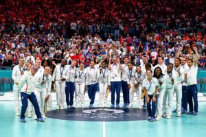 L’engouement, la force du public et de tout ce qui s’est passé autour de l’événement. C’est vrai que moi j’ai connu ça par ma compétition, mais j’étais accompagnée par ma famille et je leur ai fait profiter des JO. Mon mari est allé voir plein d’autres sports et m’a fait partager ce que lui a vécu de l’extérieur. Nous, on ne se rend pas forcément compte, et en tant que sport collectif, on joue un jour sur deux, on doit rester concentré deux semaines et les jours off sont pour récupérer. Mais j’ai eu la bascule entre mon mari et mes parents, et ce que moi j’ai ressenti. En ramenant tout ça à la réalité, je me suis dit que c’était grandiose ce qui s’est passé.