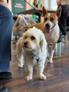 L’espace d’entrée est occupé par la partie café : « Nous avons élaboré une carte pour humains et une autre spécialement conçue pour les poilus ». Une autre pièce, en retrait du tumulte, a été rebaptisée Le coin des copains : « C’est un espace pour se mettre au calme, qui convient notamment aux animaux stressés ». Chaque mercredi matin, une ostéopathe animalière, Lara Jost, y intervient, suivie les vendredis et les samedis matin par Sandrine Tringler, spécialiste en Fleurs de Bach.