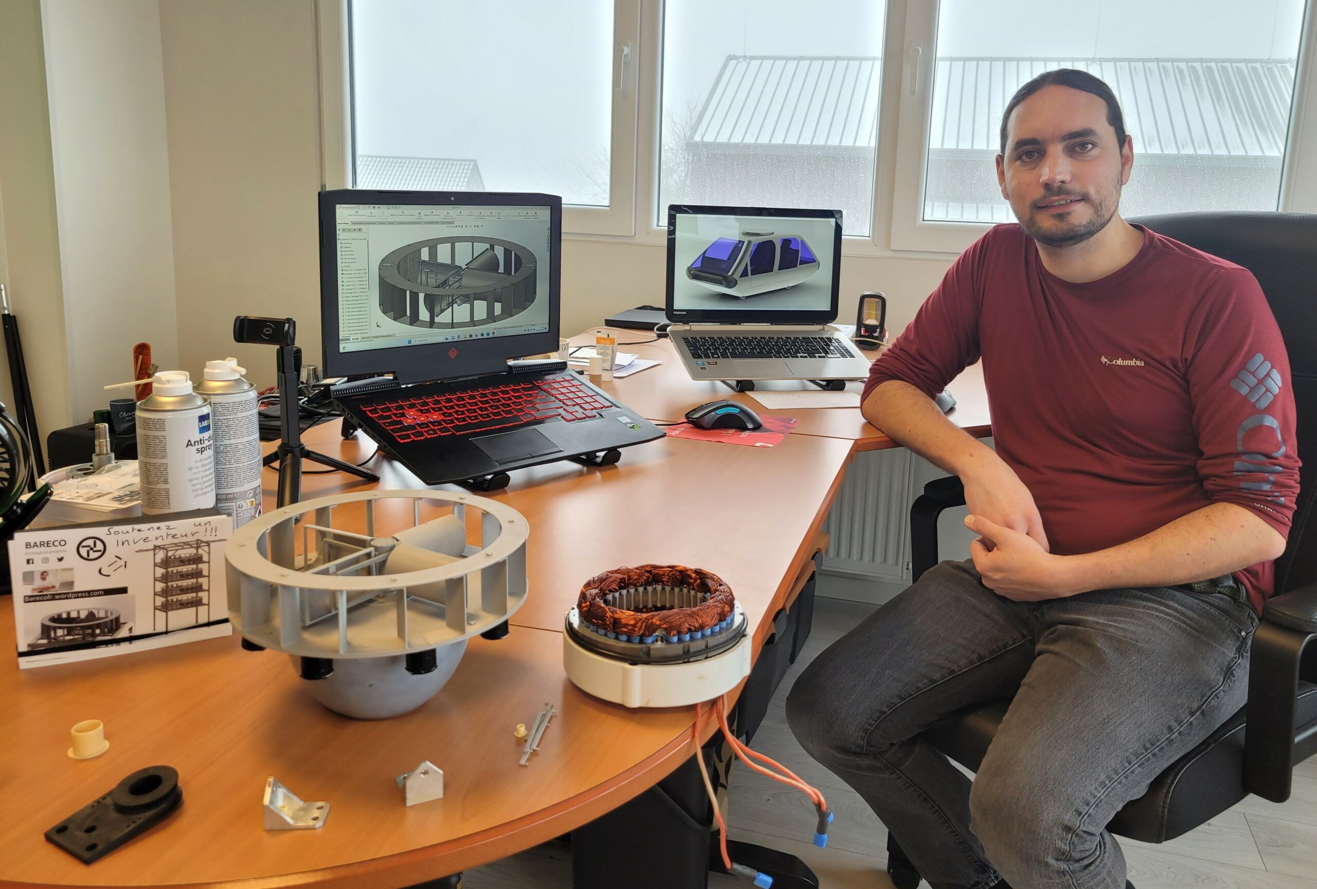 C’est à la naissance de son fils, il y a huit ans, que le jeune inventeur alsacien a décidé de sauter le pas, d’inventer : « Lorsque je travaillais en usinage en Allemagne, j’en ai profité pour créer le premier prototype de mon éolienne, telle que je l’imaginais. Il s’agit plus d’une amélioration qu’une invention. Je lui ai donné le nom de Mistral ».