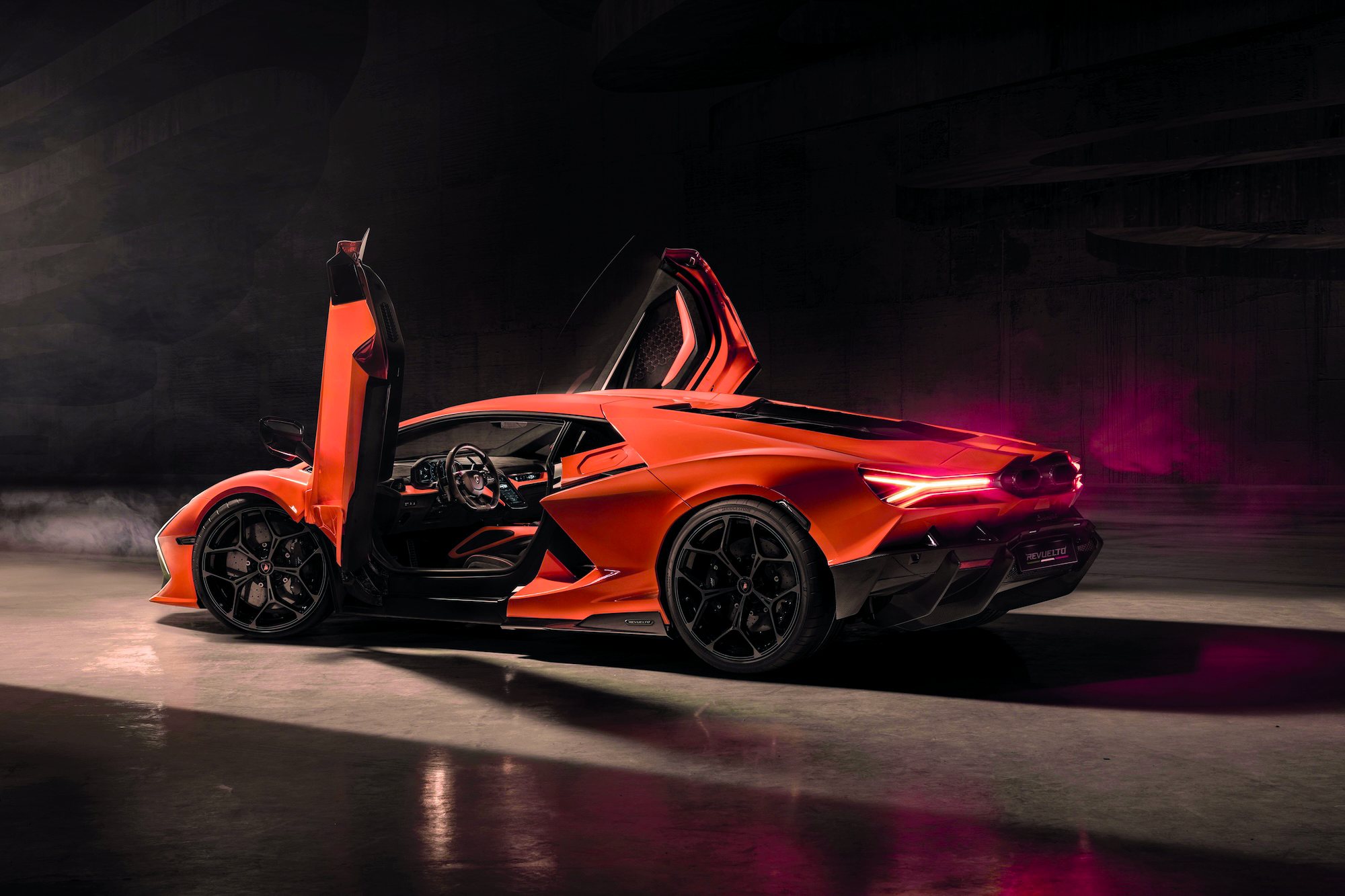 Après la Diablo (1990), la Murcielago (2001) et l’Aventador (2011), la Revuelto perpétue cette tradition des Lamborghini qu’on affiche sur les murs de sa chambre d’enfant. Son design paraît moins inspiré et original que celui de l’Aventador qu’elle remplace, mais l’esprit ne change pas : longue comme une grosse berline allemande (4,95 mètres) et large comme un petit camion (2,03 mètres). Cette chose plate et très sculptée fait s’arrêter de marcher les passants.