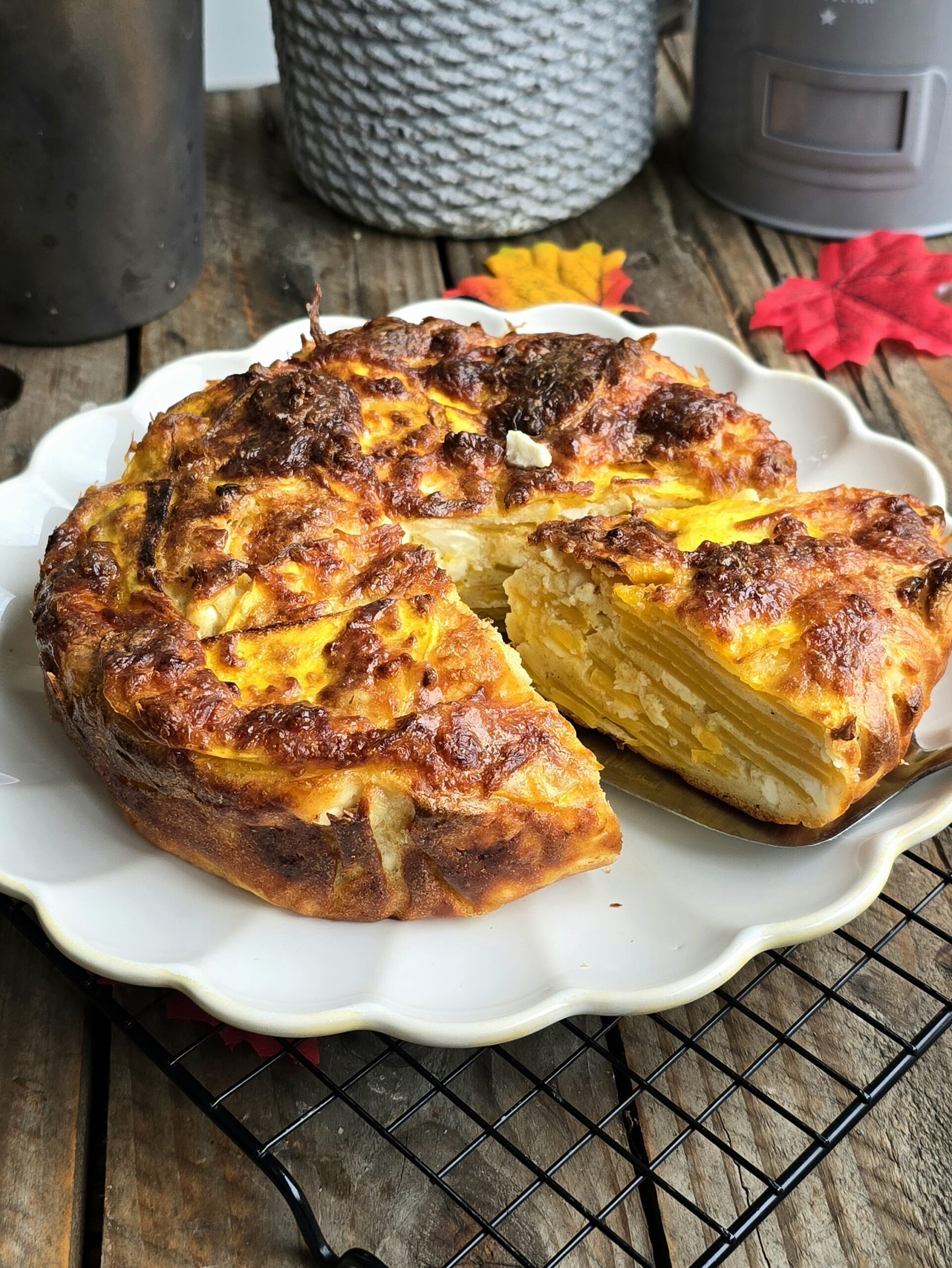 Incorporez les tranches de butternut dans l’appareil et mélangez avec une cuillère en bois jusqu’à ce que la pâte se répartisse partout et enrobe les tranches de butternut.