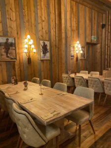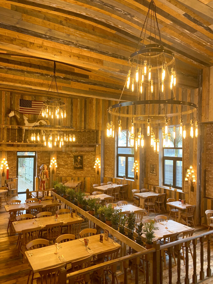Dès le seuil franchi, le décor de bois massif et l’ambiance feutrée vous transportent en plein cœur de l’Amérique des pionniers. L’intérieur du restaurant est riche en détails boisés, tableaux et décors d’époque. « Ce que j’ai voulu créer ici, c’est bien plus qu’un simple restaurant, c’est une véritable immersion au Far West. » explique Evangelos Venedikis, propriétaire des lieux. Et c’est réussi !