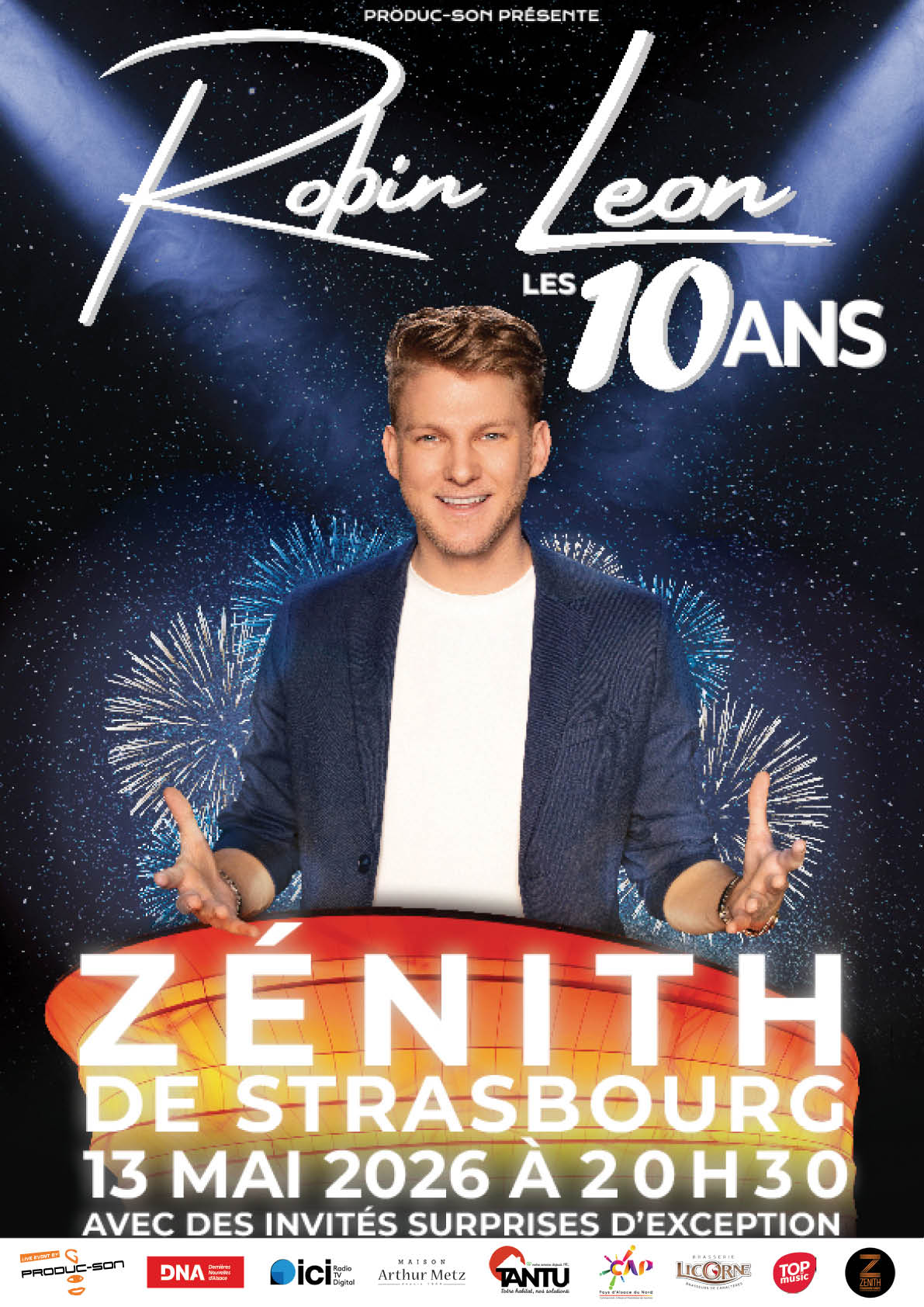 Mais l’histoire ne s’arrête pas là… Robin Leon travaille sans relâche sur de nouveaux projets, toujours plus ambitieux ! Et l’un d’eux lui tient particulièrement à cœur : célébrer ses dix ans de scène avec un concert grandiose au Zénith de Strasbourg !